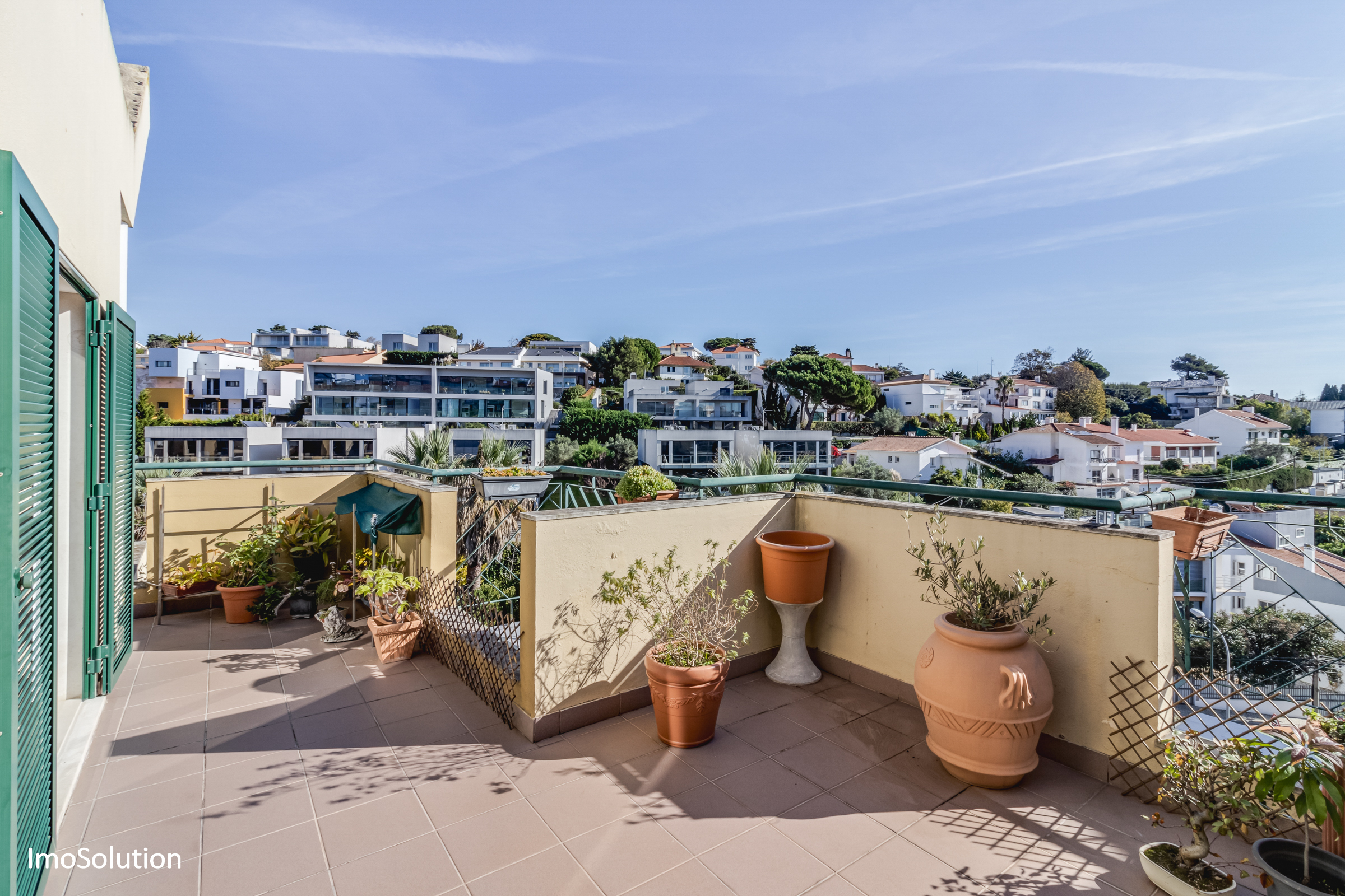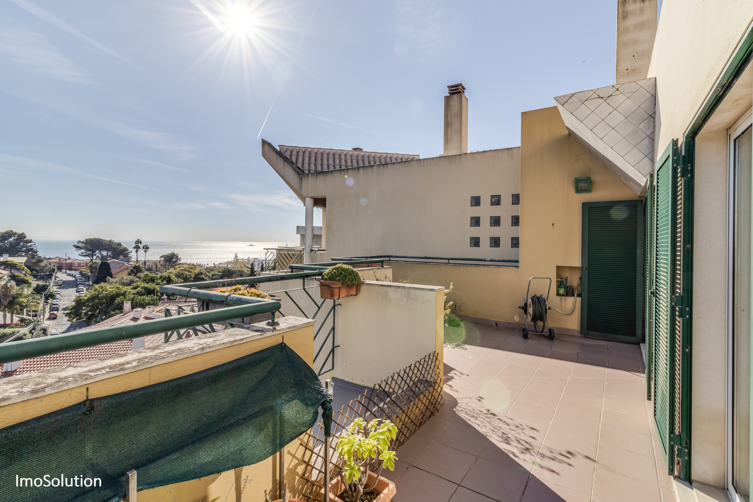 A propriedade tem um terraço magnífico com vista maravilhosa para o mar, interior do condomínio e toda a envolvência urbana.
